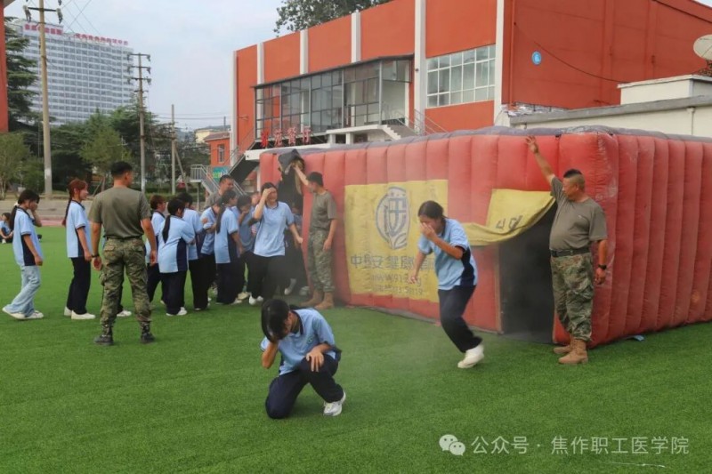随后,焦作职工医学院搭建起模拟火场烟雾场景,逼真的环境让新生们亲身体验到身处火场的紧张与危险。在教官们的指引下,新生们学习了弯腰低姿、捂口鼻等正确逃生方法,通过实际体验加深了对消防安全知识的理解,提升了应对火灾的自救互救能力。